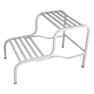 ارتفاع تخت های بیمارستانی طبق استاندارد طوری تعریف شده که پزشک بتواند بیمار را به راحتی ویزیت کرده و مراقب همراه بیمار و پرستار نیز برای رسیدگی به شخص بیمار مشکلی نداشته باشند. بنا براین بیمار برای پایین آمدن و بالا رفتن از تخت بیمارستانی نیاز به یک ارتفاع جداگانه از سطح زمین دارد که بتواند با قرار دادن پای خود برروی آن براحتی و بدون ریسک افتادن از تخت پایین بیاید یا بالا برود. پله کنار تخت از نوع دو پله میباشد که برای این کاربرد تولید شده و علاوه بر بیمارستان ها در تمام مواردی که نیاز به ارتفاع بیشتر باشد استفاده میگردد. این محصول از استحکام بالایی برخوردار است و کیفیت رنگ بکار رفته در آن محصول را در برابر رنگ پریدگی محافظت نموده و طول عمر آن را افزایش میدهد.